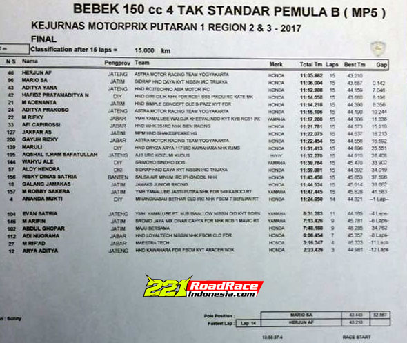 Hasil kelas Bebek 4 Tak STD 125 cc Pemula / MP6