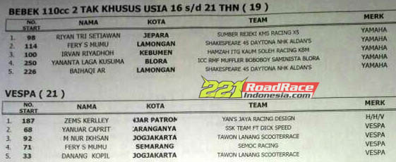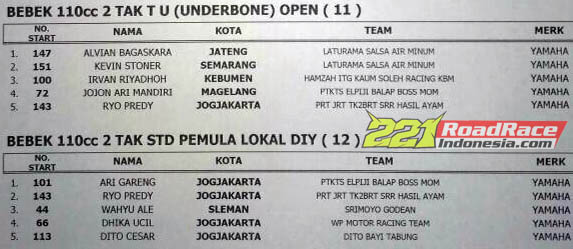Seperti biasa, ajang balapan sekaligus wisata malam ini kembali dibanjiri peserta dari berbagai penjuru, mulai Sumatra Jawa sendiri dan Madura. Kasta status pembalap yang hadir juga merata dari pembalap level kejurda hingga Asia, semua tumplek blek di nite race Jogja. Dari para pemain kejurda Jawa Timuran hingga rider andalan indonesia di balap Asia seperti Gupito Kresna.