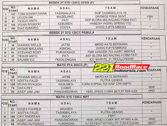 Berikut hasil lengkap HUMAS POLRES DAN DISPORA WISATA KEBUMEN ROAD RACE 2017 yang digelar Minggu 12 Maret 2017 di Sirkuit dadakan Jalan raya alun-alun kota Kebumen Jawa Tengah. Cekidot…!! Rudi221