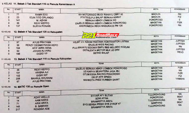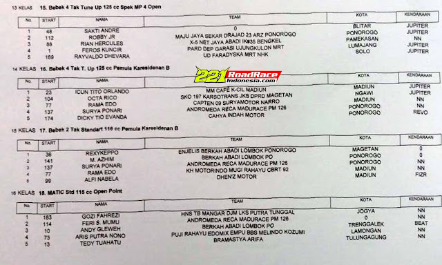 Berikut hasil keseluruhan lomba hari ini di KRATINGDAENG DJARUM BG ROAD RACE 2017 PAK DHE BALAP 69 Seri 3 Jawa Timur yang diselenggarakan di Sirkuit dadakan Jl. Mayjen Sungkono kota Magetan Minggu 17 September 2017. Cekidot… Rudi221