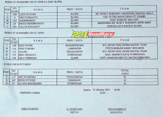 Road Race JEPARA 2017, Hasil Lomba & Cerita Aksi Dalam Galery